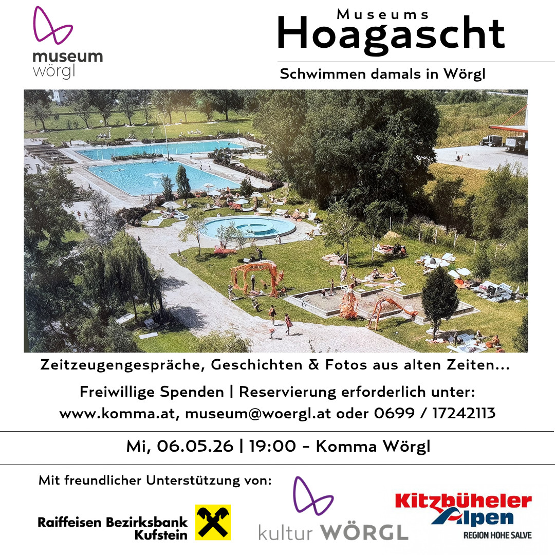 |  | | Museumshoagascht - Schwimmen damals in Wörgl Mi, 06.05.2026, 19:00 | Museum Wörgl, Wörgl Veranstaltet von Museum Wörgl